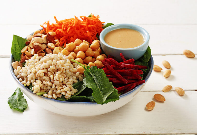 Kale, Beet and Chickpea Power BowlKale, beets, chickpeas, quinoa, pumpkin seedsNot mentioned39gHigh in fiber, Vitamins A & C, IronLunch/Dinner