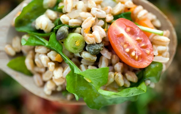 Fiber reduces blood cholesterol levels, supports a healthy gut and lowers the risk of developing colorectal cancer, cardiovascular disease and Type 2 diabetes. The fiber content in farro improves digestive health and can improve satiety that may lead to less weight gain or even some weight loss.